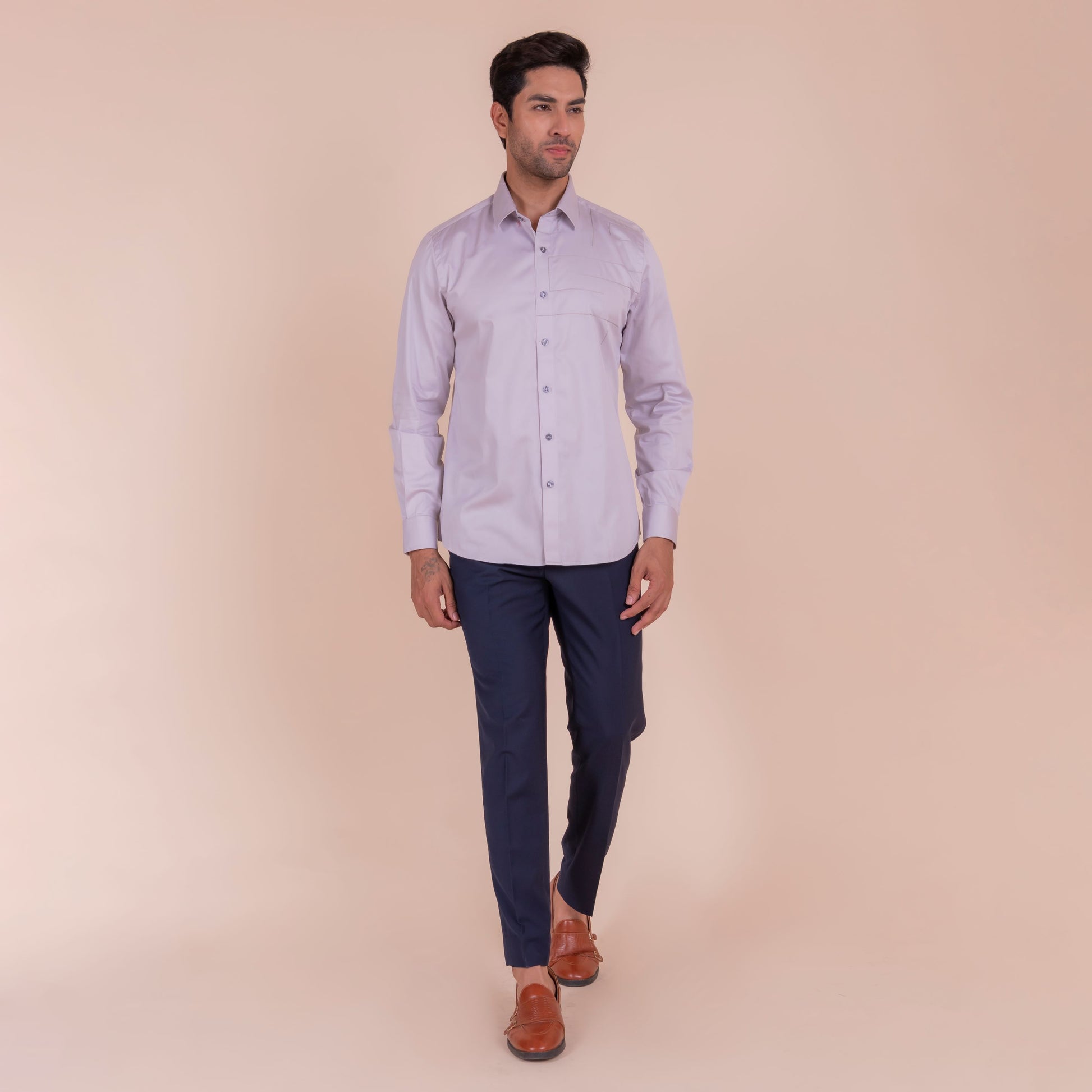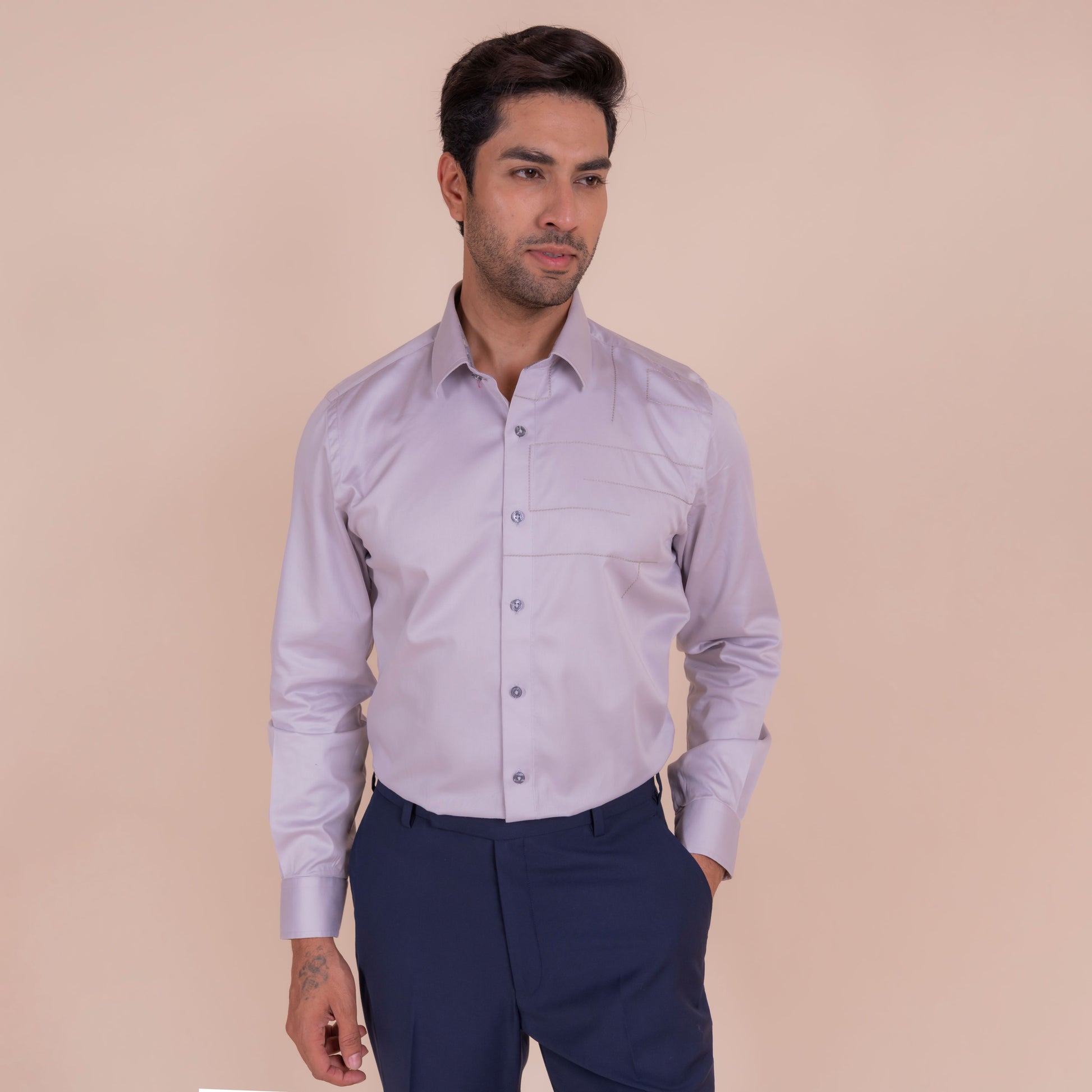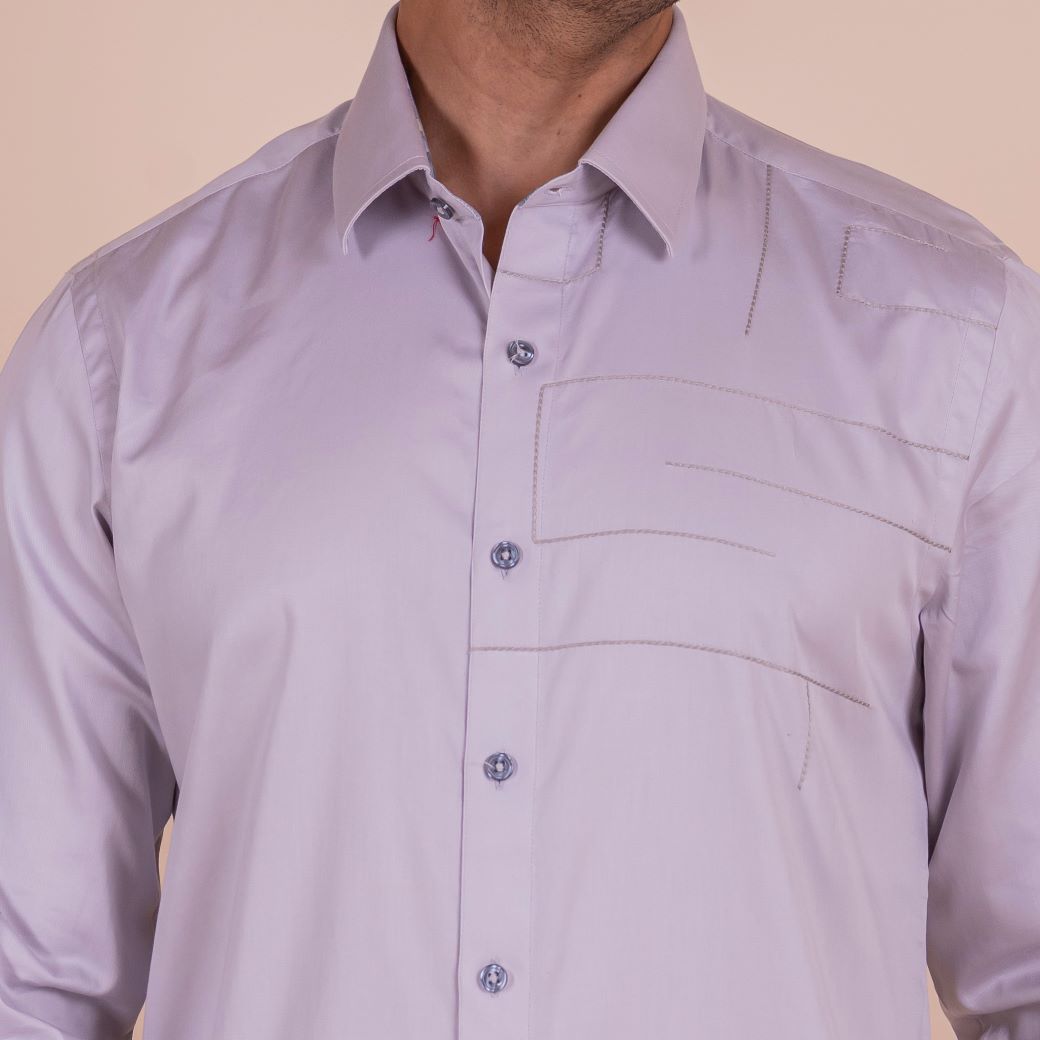 Show off your sense of adventure with this light grey shirt, featuring an anchor design that symbolizes stability and strength. The unique feature and slim fit design make it perfect for casual wear.
