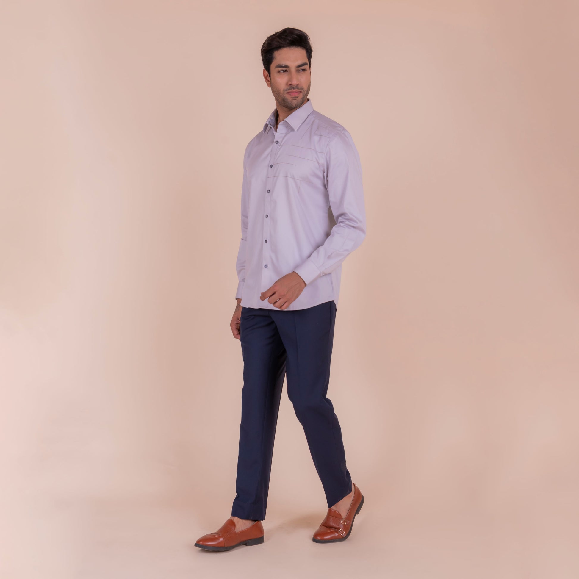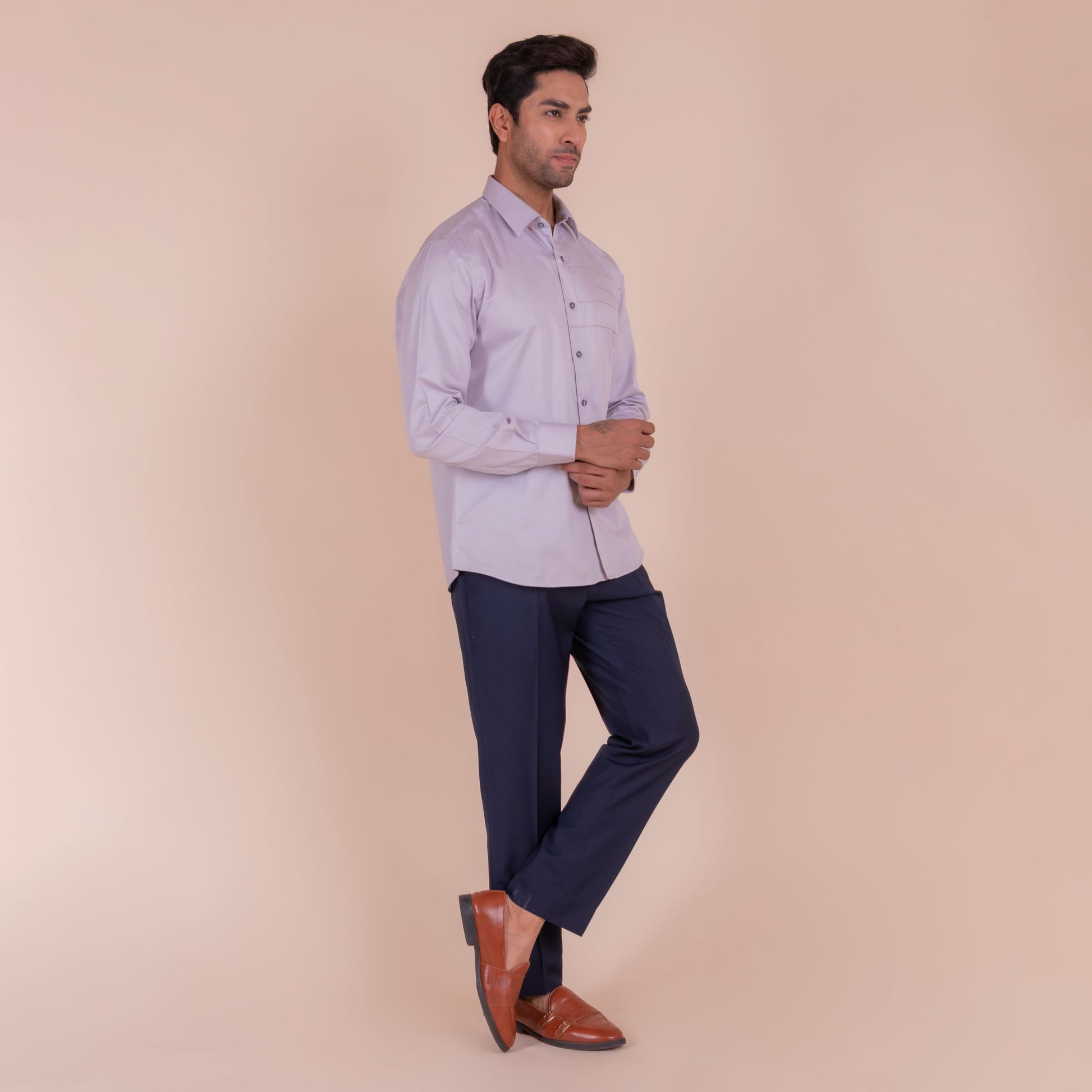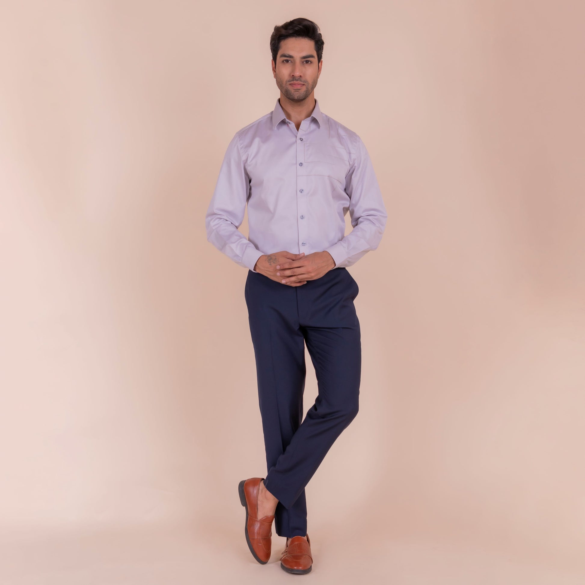 Show off your sense of adventure with this light grey shirt, featuring an anchor design that symbolizes stability and strength. The unique feature and slim fit design make it perfect for casual wear.
