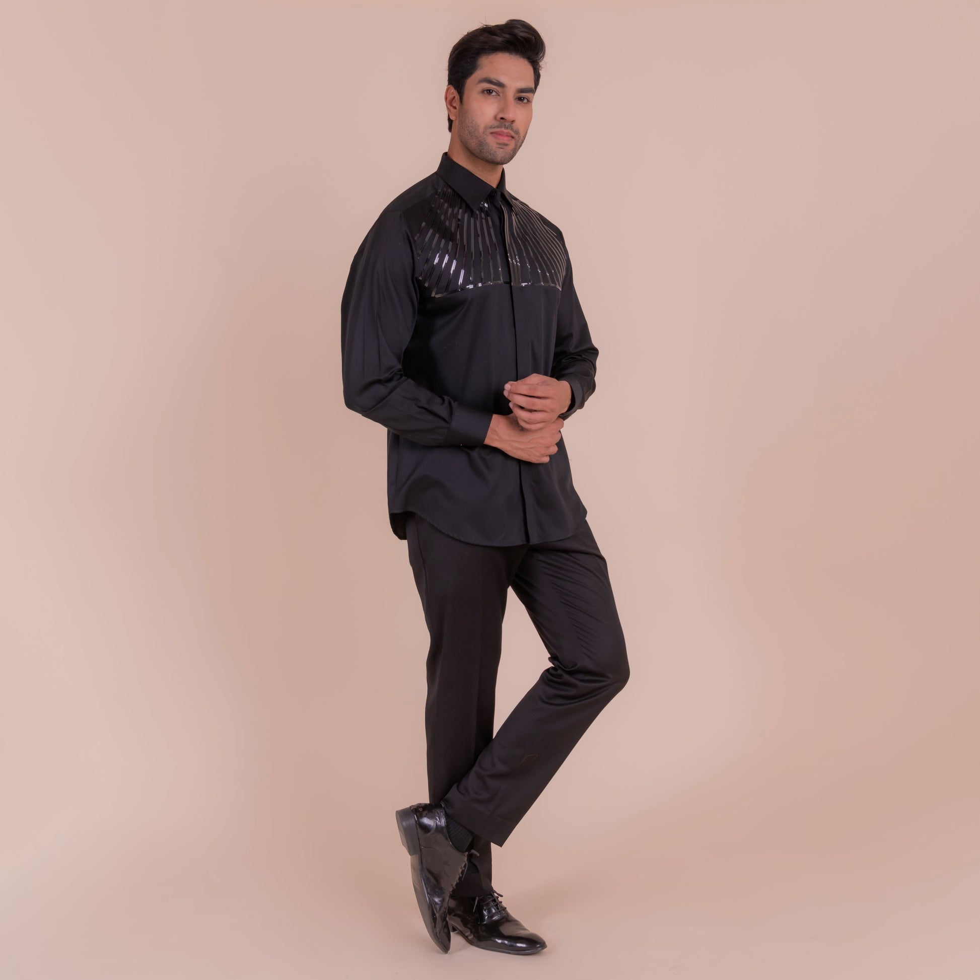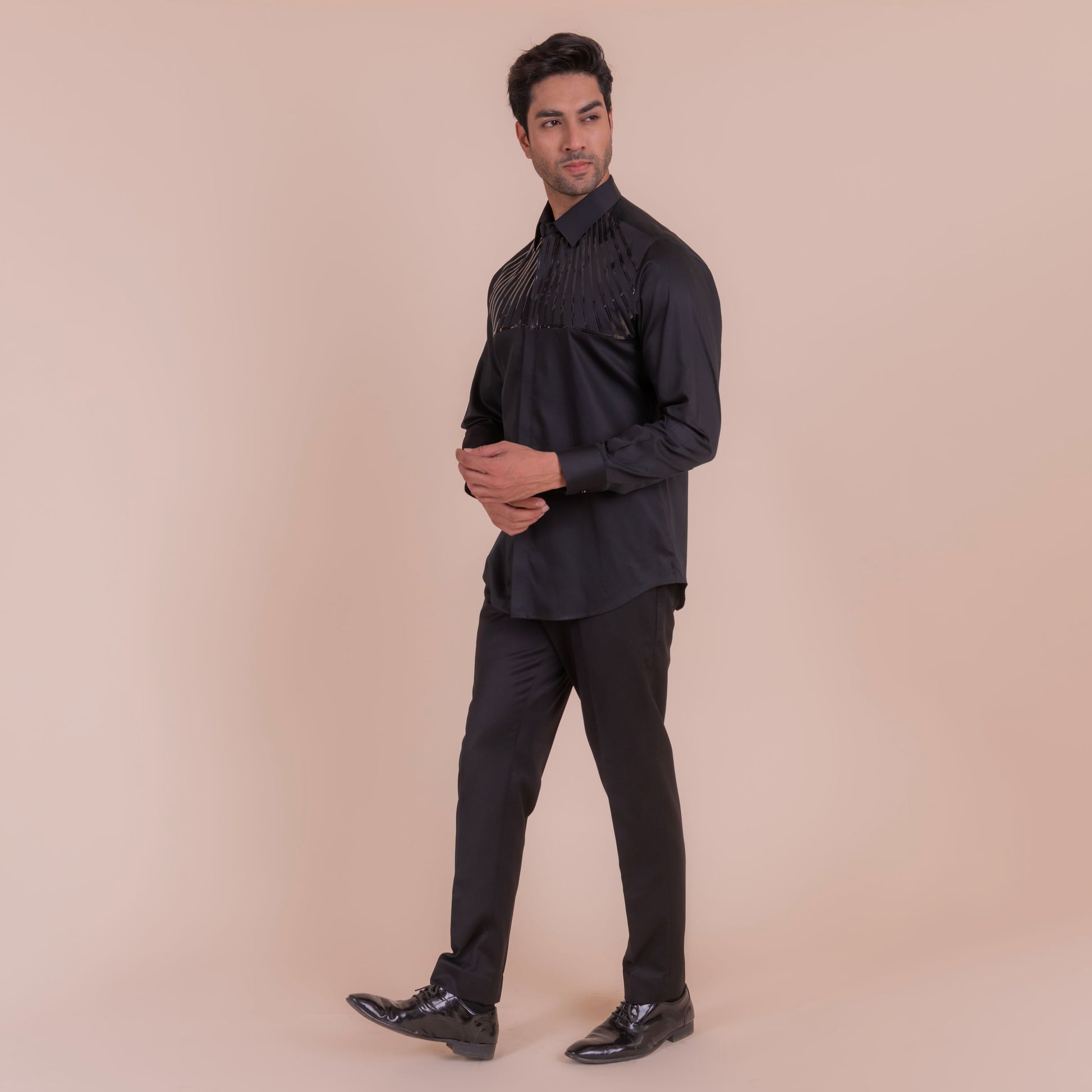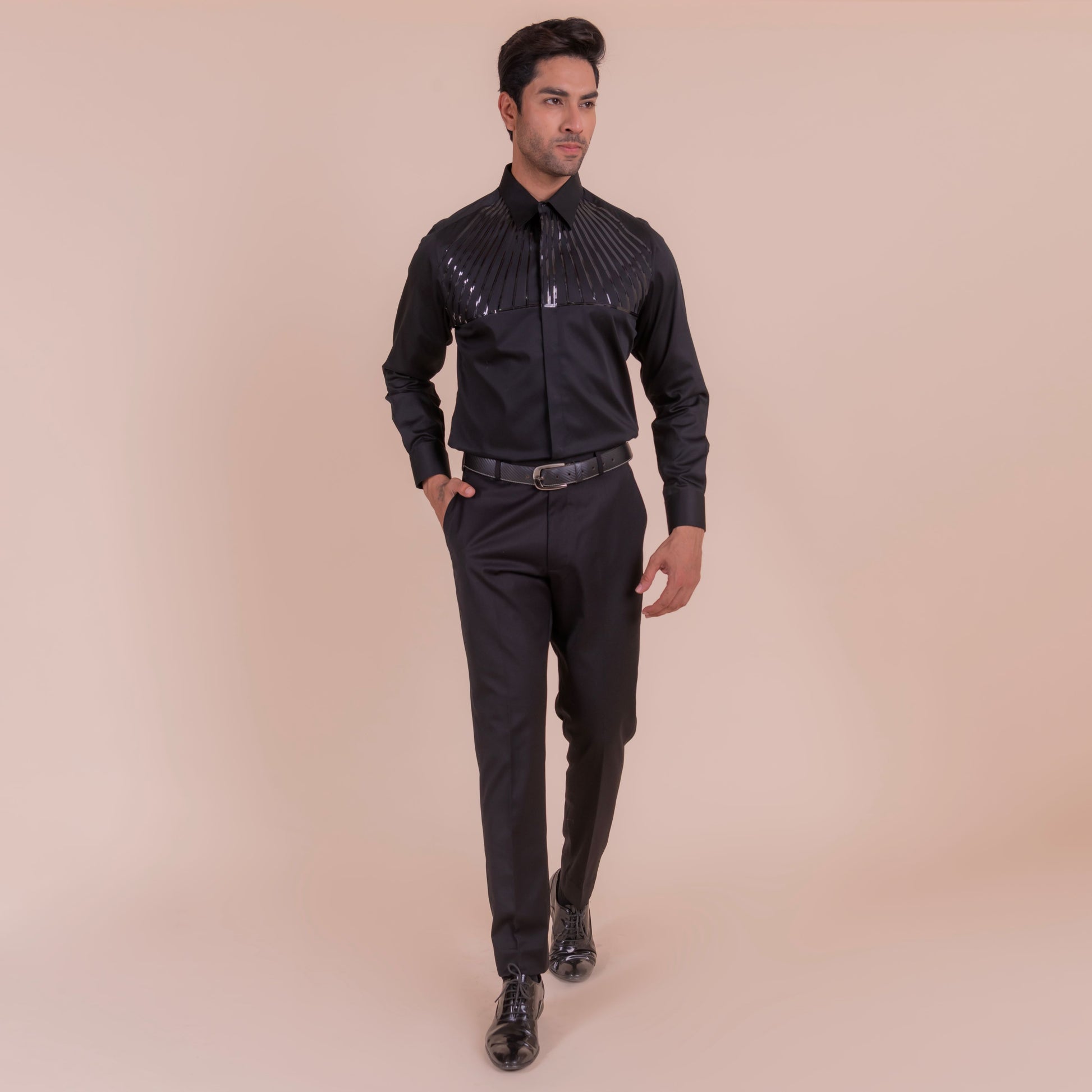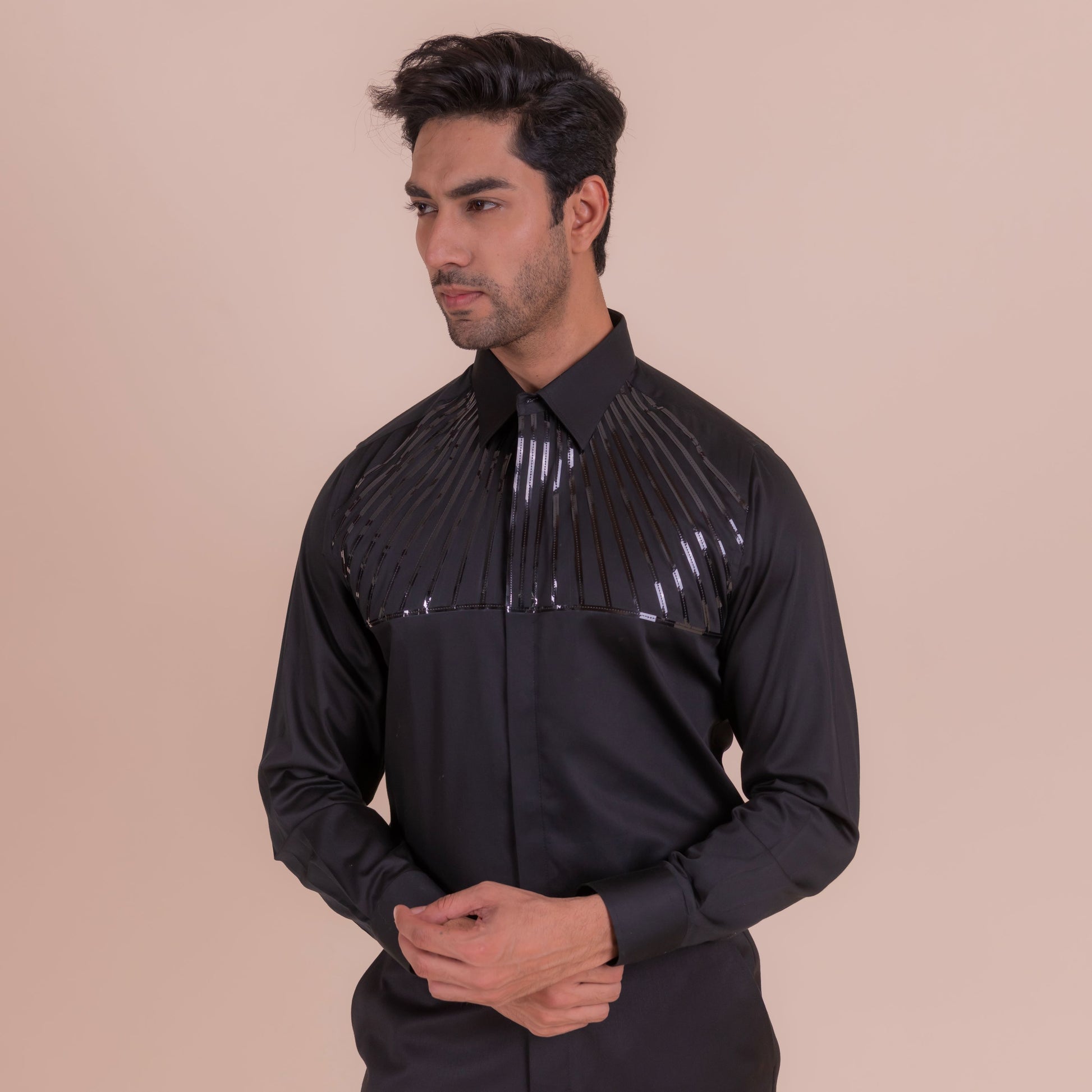 Make a bold statement with the lineage, a black shirt featuring sleek tape lines detailing on the upper half. This edgy and modern design adds a touch of rebellion to any outfit, perfect for those who dare to be different.