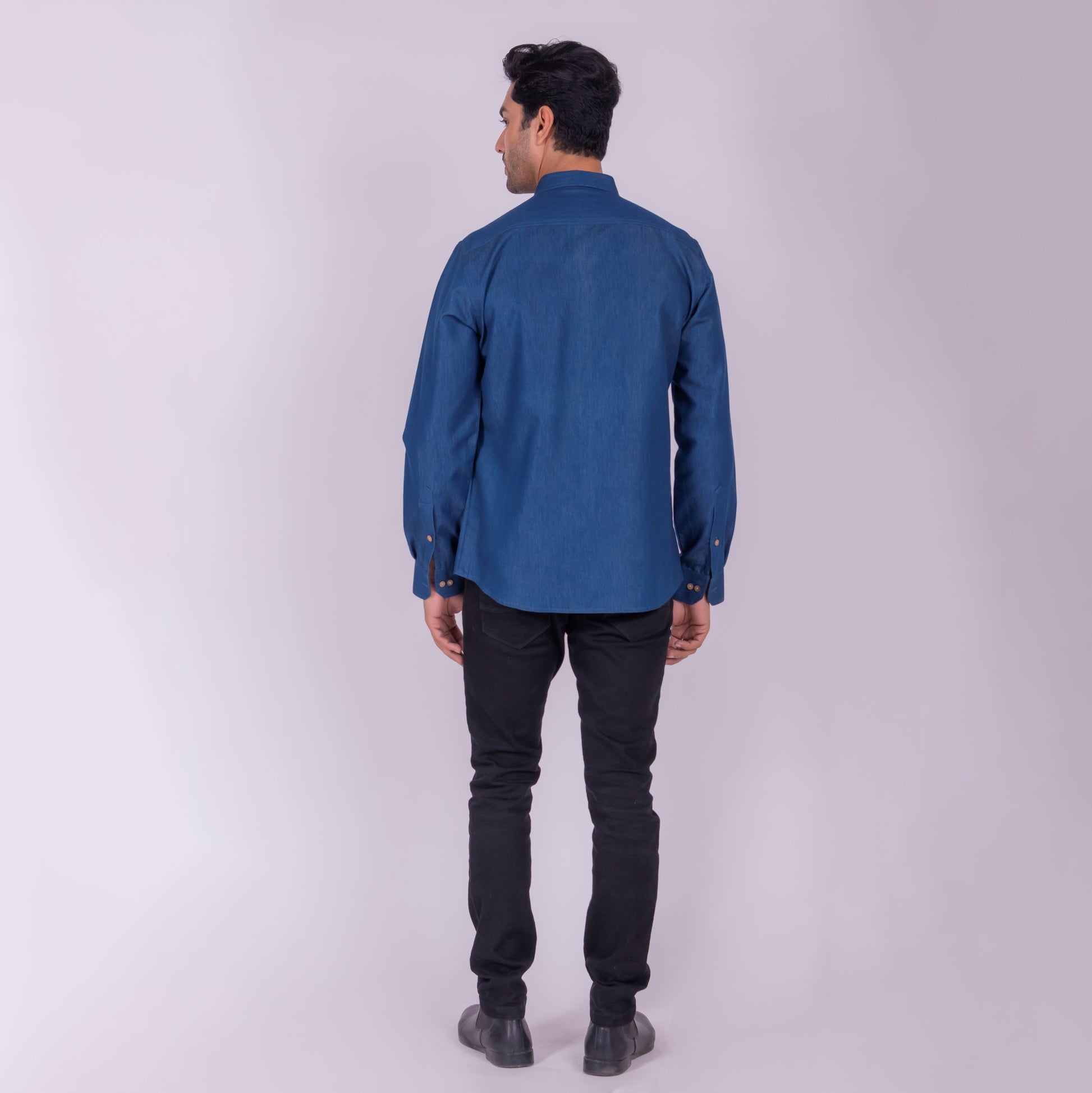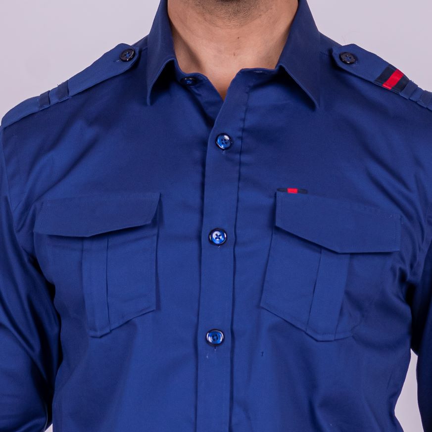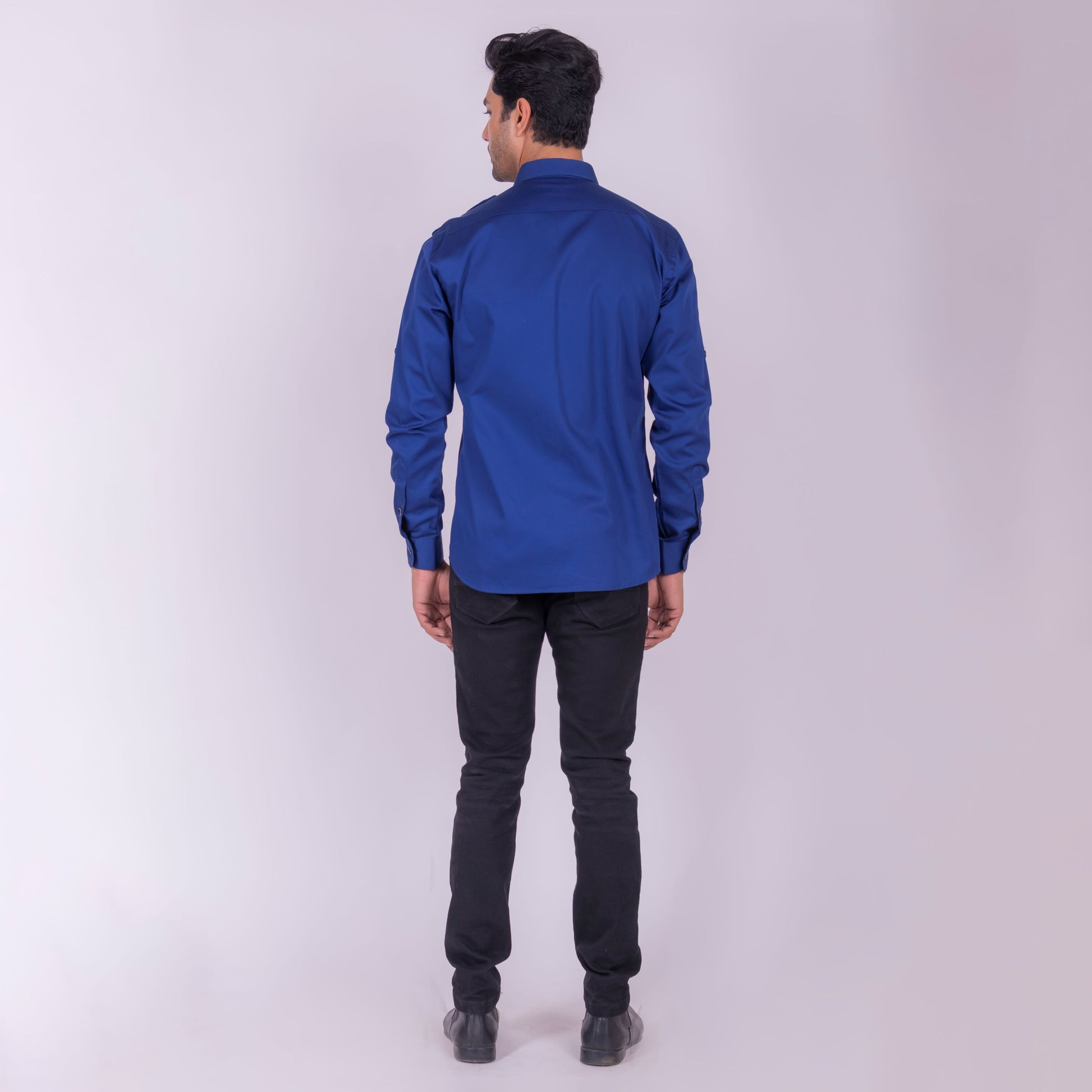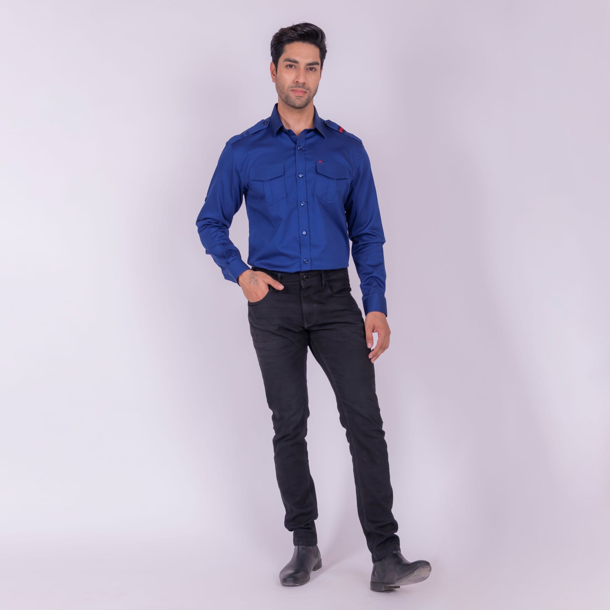 Embrace your adventurous side with this blue shirt, featuring functional pockets and a rugged design. The premium fabric and unique features make it perfect for outdoor activities.