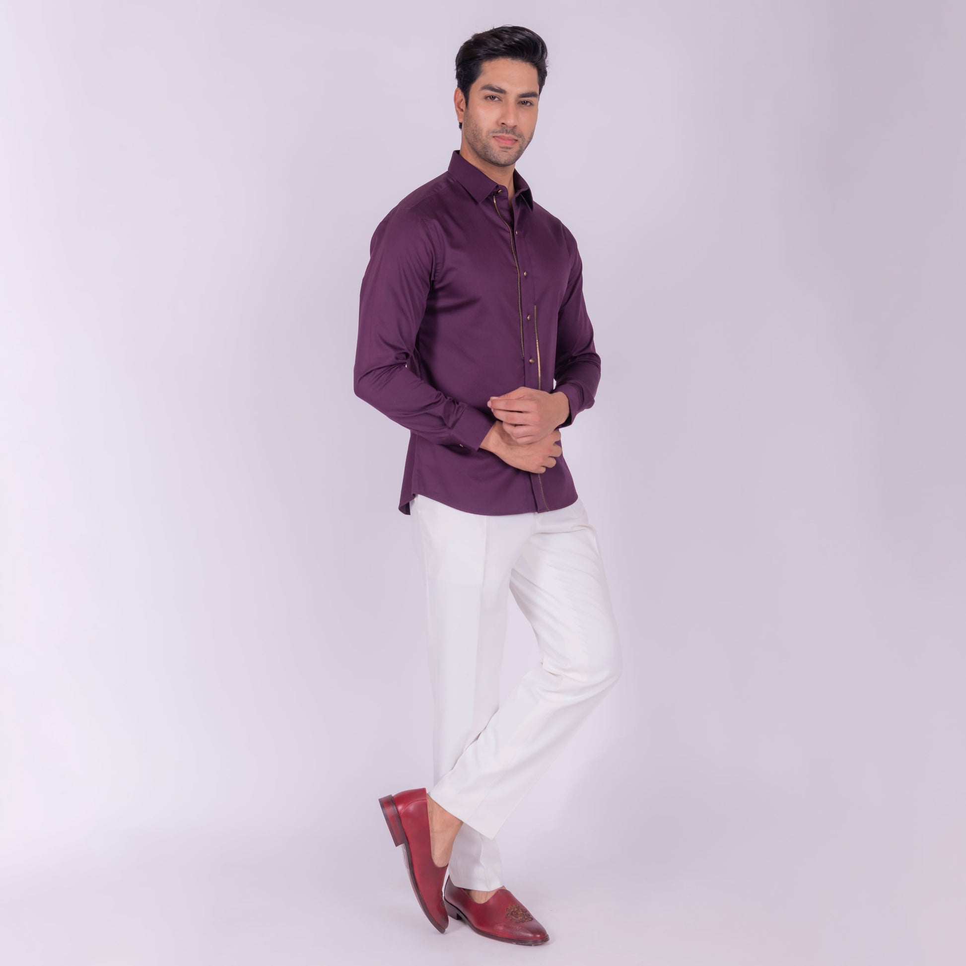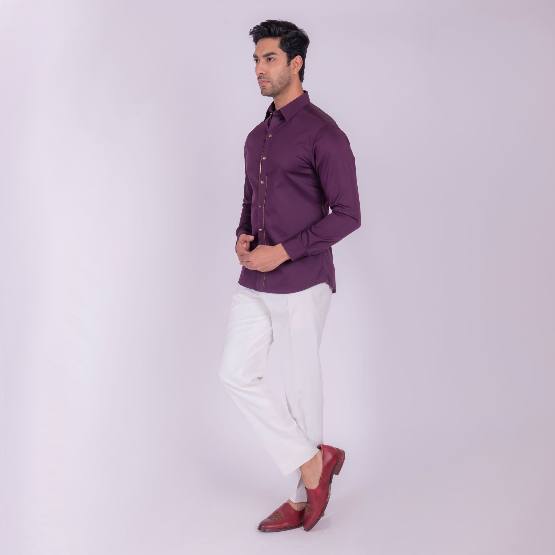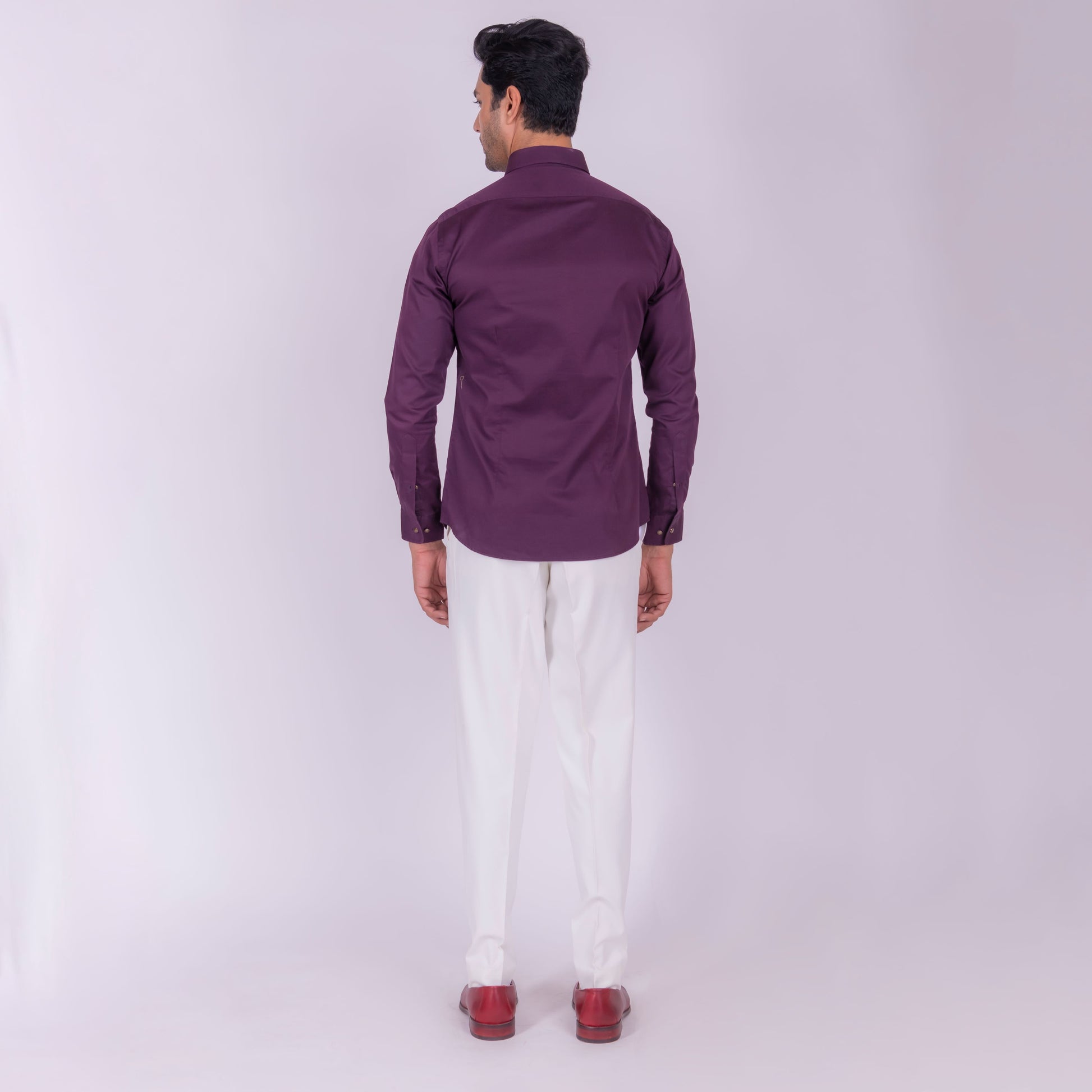 Exude luxury and sophistication with this rich purple shirt, featuring a slim fit design and premium fabric. The unique color makes it perfect for formal events.