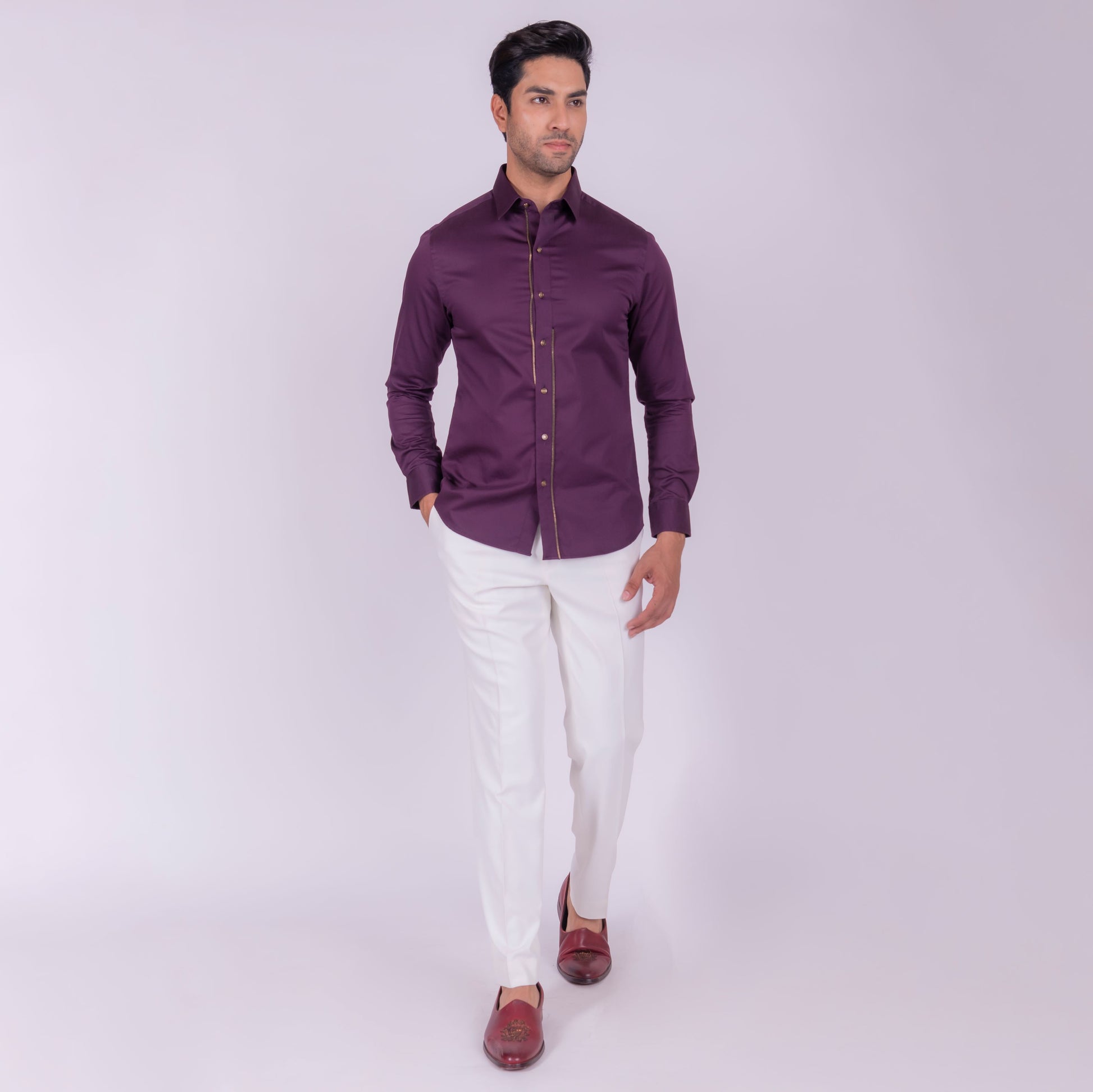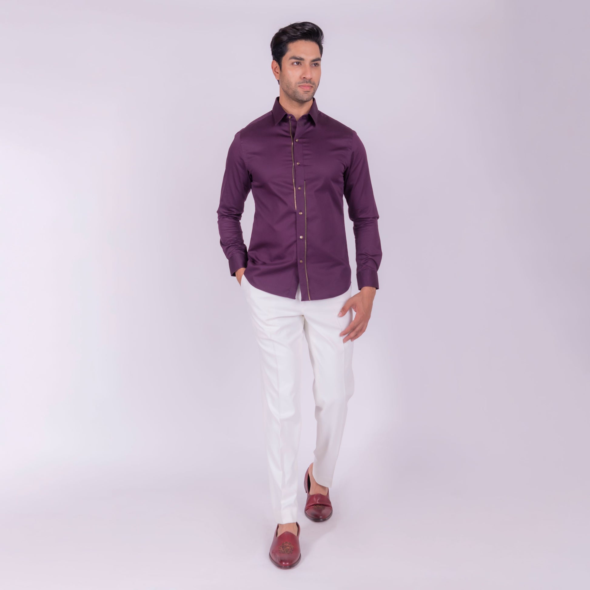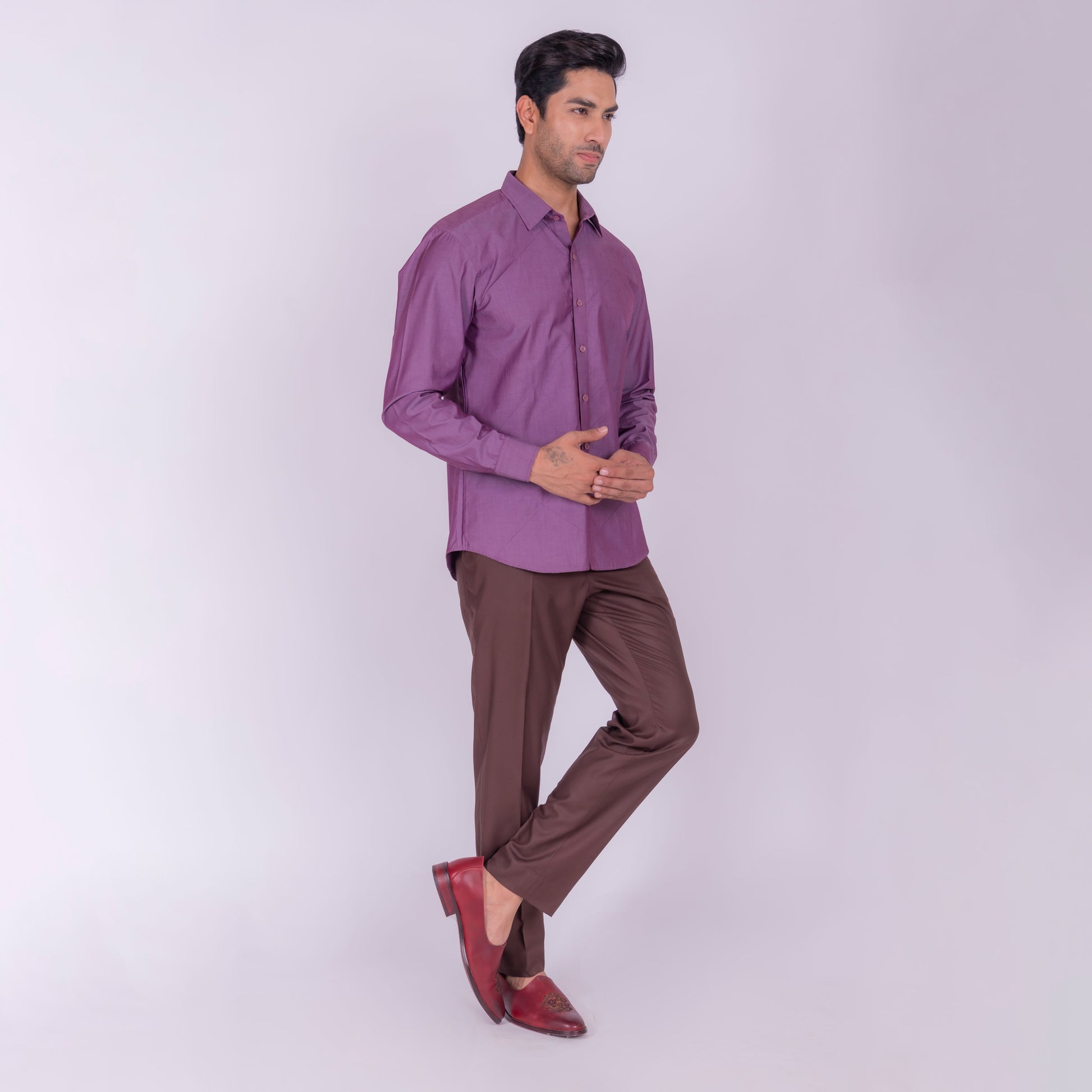 Exude luxury and sophistication with this rich purple shirt, featuring a slim fit design and premium fabric. The unique color makes it perfect for formal events.