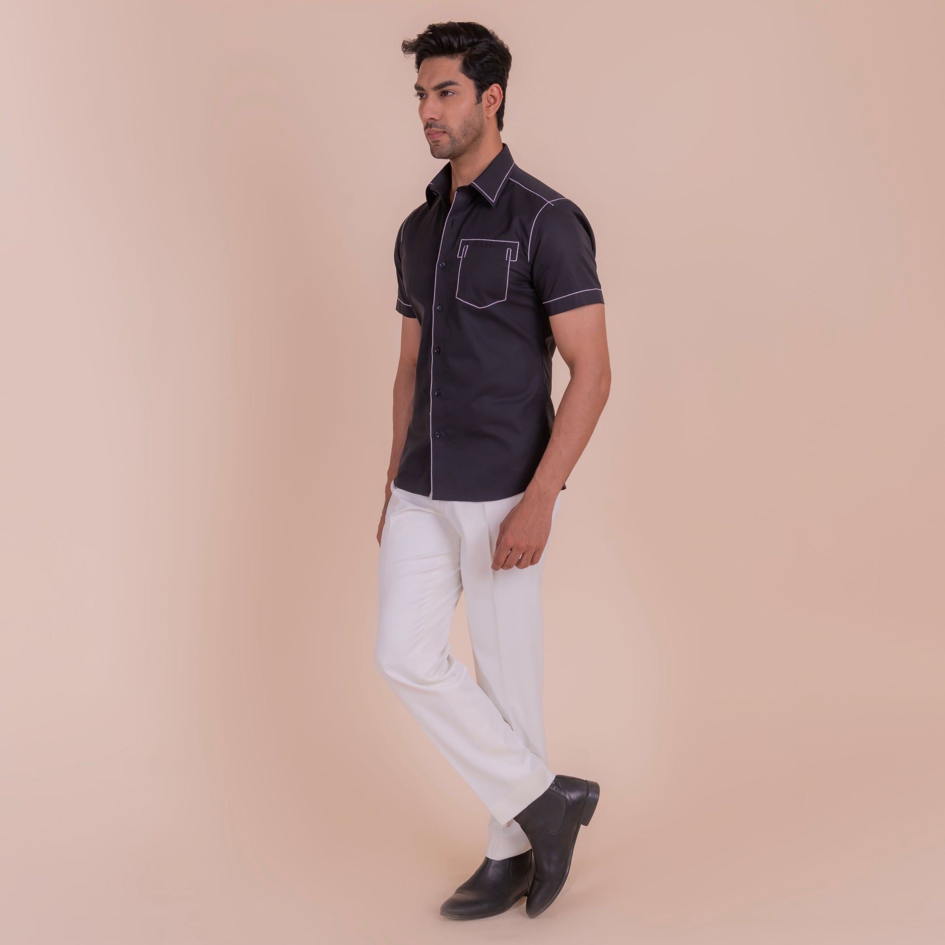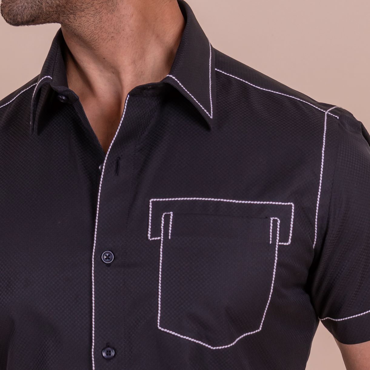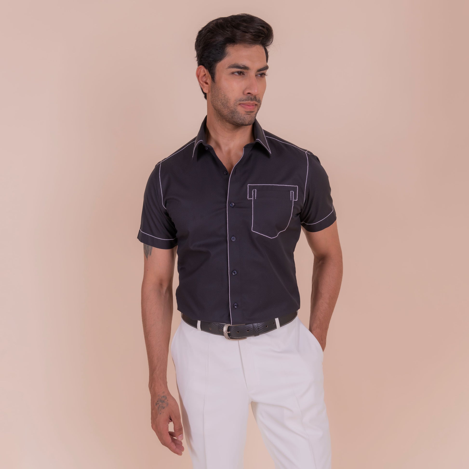 Make a bold statement with the Sharp Contrast Shirt. The black shirt with contrasting white stitching is perfect for those who appreciate modern, edgy designs. Ideal for both work and evening outings.